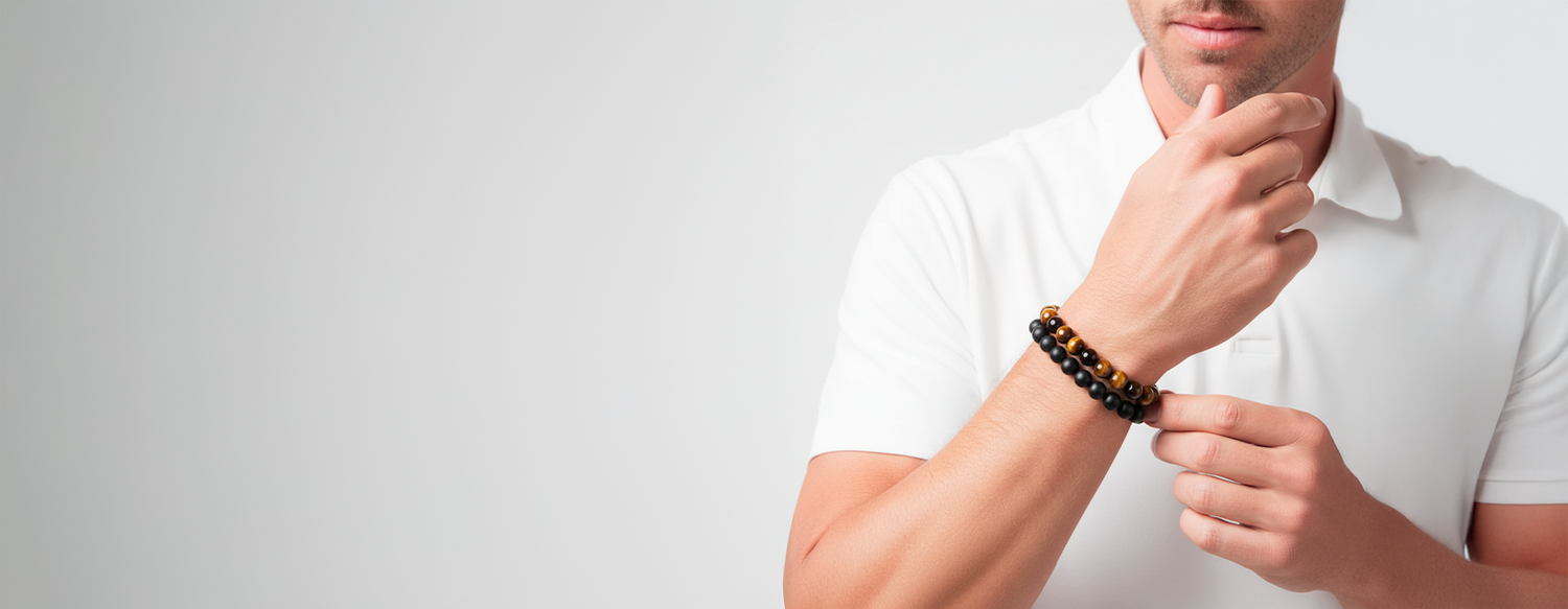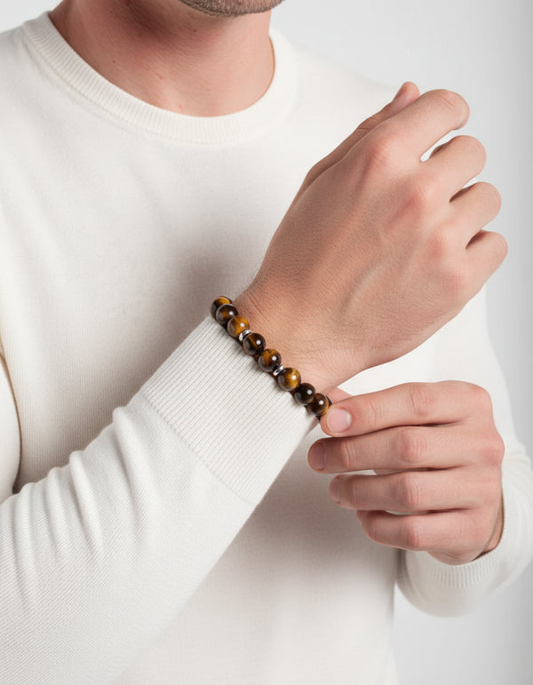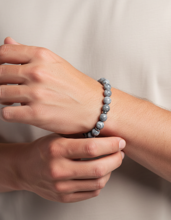 Pulseira de Pedra Jaspe com Elos de Aço Luhem