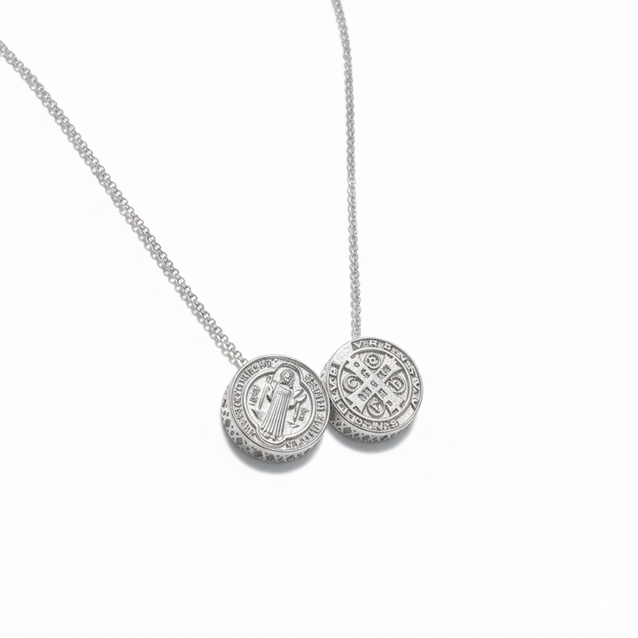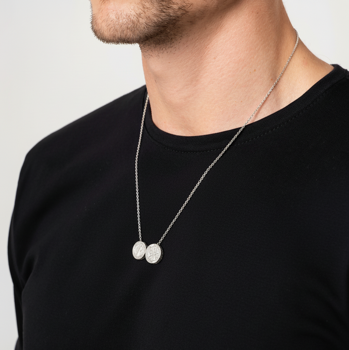 Escapulário em Prata 925 com sistema de medalha móvel, pensado para quem busca um upgrade discreto no visual. Versátil: use uma medalha na frente ou duas, conforme o estilo do dia. Disponível nas medidas 45 cm, 50 cm, 60 cm e 70 cm, para se ajustar ao seu pescoço e ao caimento da camiseta. Design limpo, acabamento de qualidade e presença na medida certa.