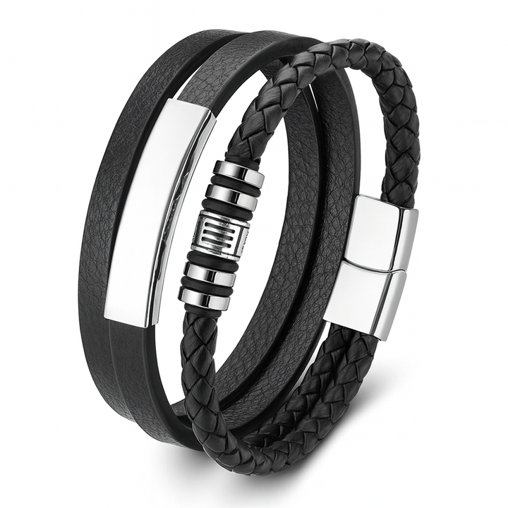 Pulseira masculina de couro trançado com fecho magnético em aço inoxidável. Acessório moderno, resistente e versátil, ideal para qualquer estilo casual ou sofisticado.