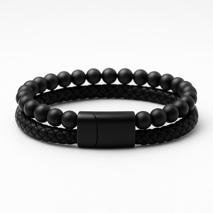 Pulseira de Pedra Ônix com Couro Trançado Preto Luhem