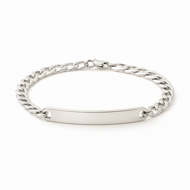 A Pulseira de Prata 925 com Chapa combina a elegância sutil da prata pura com um design contemporâneo. Com uma chapa polida posicionada centralmente, esta pulseira torna-se um acessório distintivo, ideal para quem procura uma peça que faça declaração sem ser excessivamente ostensiva.