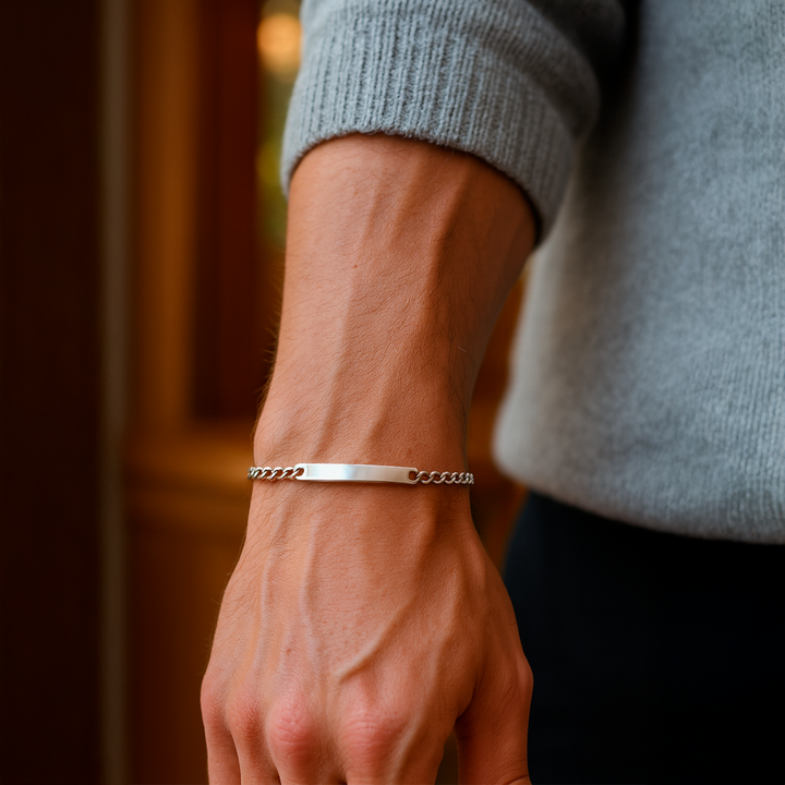 - Versatilidade Moderna: O design com chapa permite que esta pulseira seja usada tanto em ambientes casuais quanto formais.