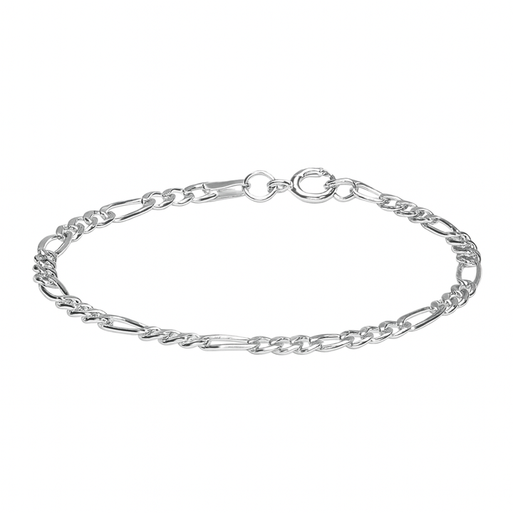 Pulseira Figaro (3x1) em Prata 925 — sequência clássica de 3 elos curtos + 1 elo longo, brilho limpo e caimento confortável. Discreta, elegante e unissex. Use sozinha ou combinada.